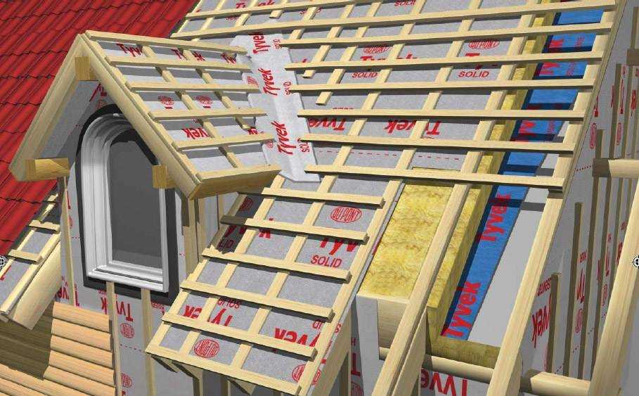 Между обрешеткой и гидроизоляцией необходимо наличие вентиляционного зазора, для этого на каждую стропильную ногу нужно набить рейки толщиной не более 4 см.