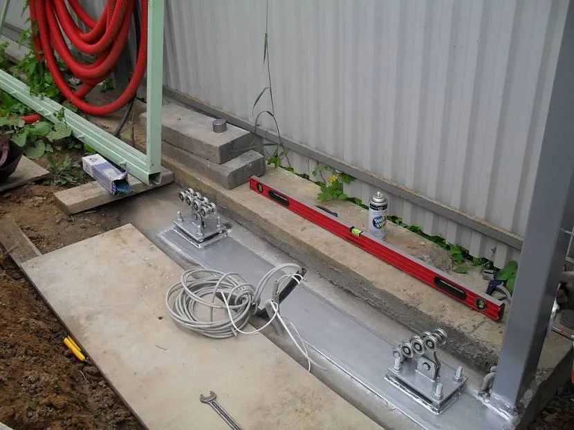 Фундамент требуется под закладную, куда фиксируются ведущие ролики. Для этого лучше всего организовать железобетонное основание. Причем основание делается по-разному: