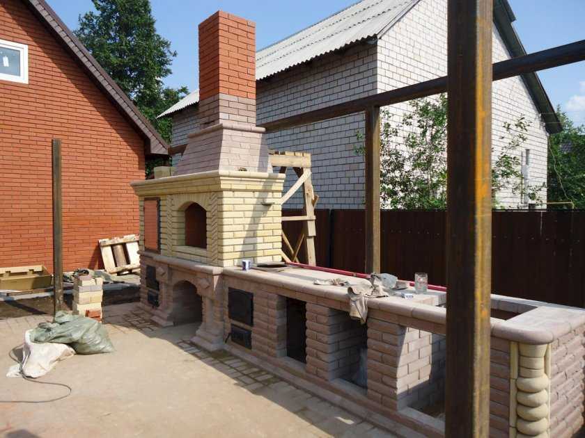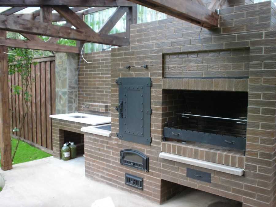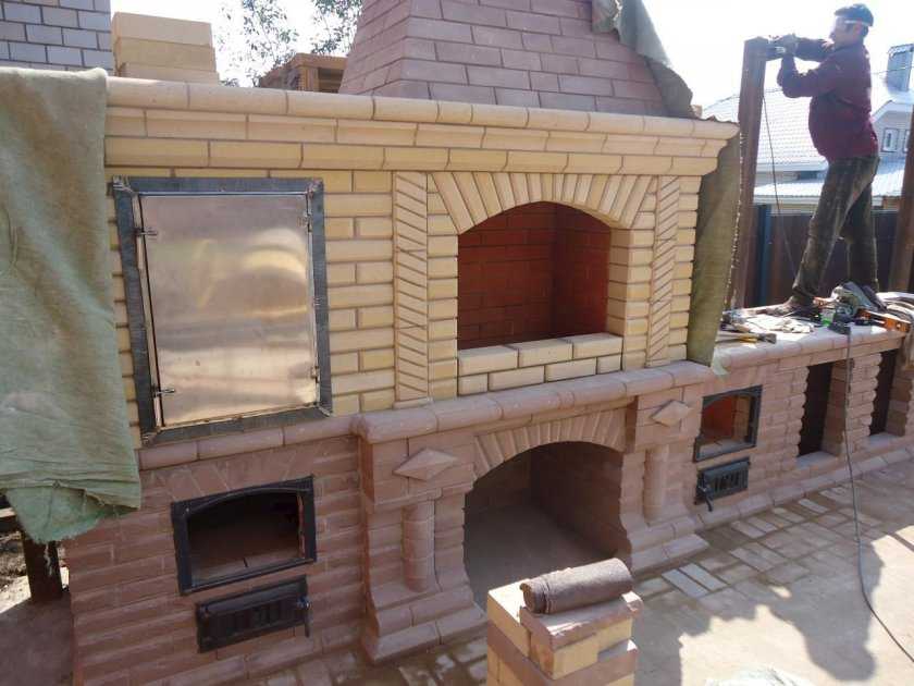 Смысл постройки от этого особо не меняется. Также используется кирпичная кладка, внутри которой топятся дрова и происходит жарка мяса.