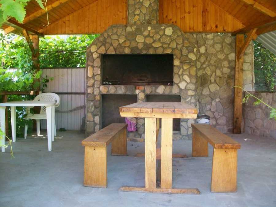 Если вы не преследуете такие цели, можно ограничиться строительством беседки с барбекю – просто и комфортно. Не потребуется больших финансовых вложений, сложных земляных и строительных работ. Кроме того, для обустройства такой кухни нет необходимости подыскивать большую площадку на участке.