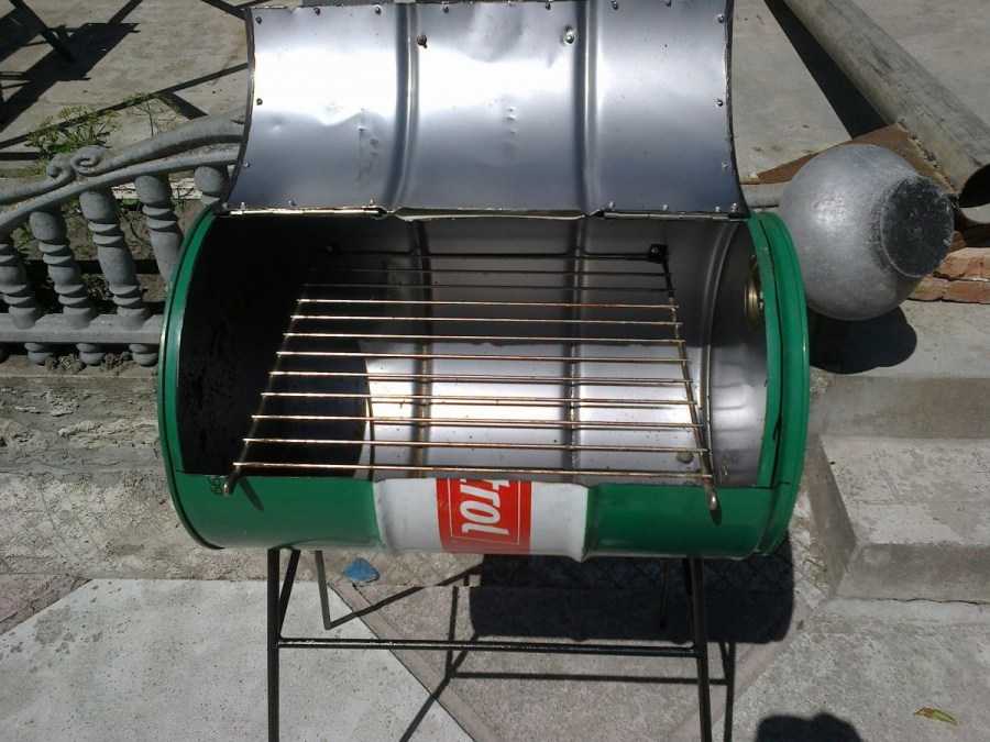 - Барбекю. Основное отличие барбекю от мангала в том, что мясо, ряба или овощи готовятся на решетке. Сама конструкция очень компактная и удобная, поэтому барбекю нередко находится в середине беседки. Кроме того, барбекю выглядит очень компактно, особенно переносная модель.