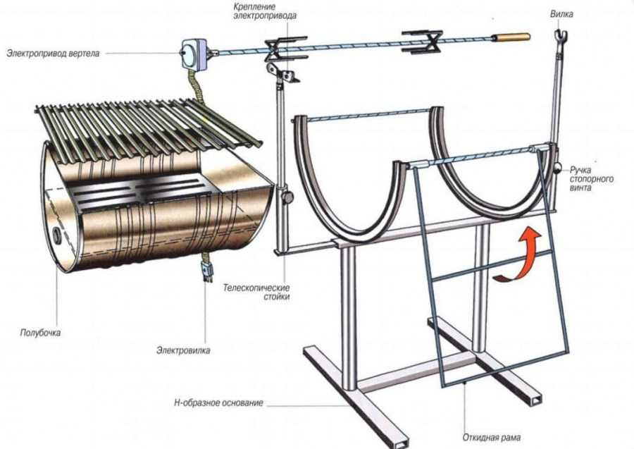 В тихих краях достаточно бывает поставить шатер над обычным мангалом, чтобы шашлыки поспевали вовремя и не подгорали, поз. 1 на рис.: