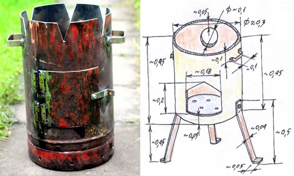 В продаже есть немало заводских недорогих моделей, но это как раз тот случай, когда можно обойтись своими силами и почти гарантированно добиться успеха. Сделать железную печь под казан своими руками можно из любого цилиндрического предмета, скорее всего, не понадобится даже сварка.