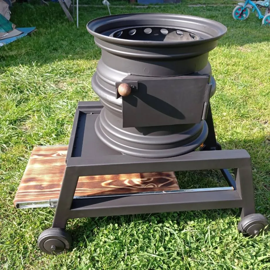 Вариант конструкции из автомобильных дисков сравнительно прост в изготовлении; важно только подобрать правильные диски (от стоковых колес)