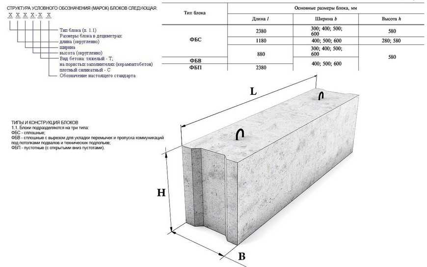 Маркировка блоков указана согласно ГОСТ на блоки ФБС.