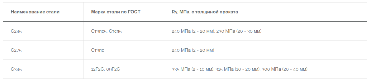 Расчетное сопротивление Ry— данный параметр зависит от марки стали. Основные значения этого показателя приведены в таблице 2.