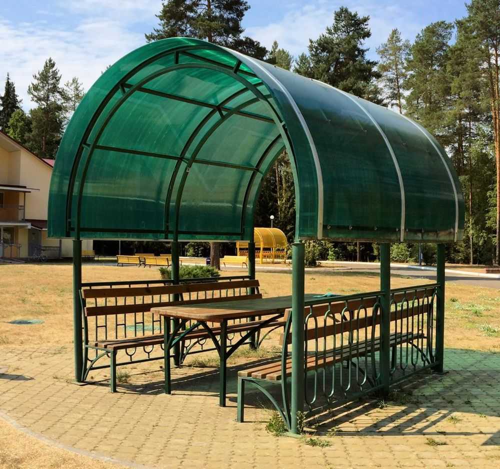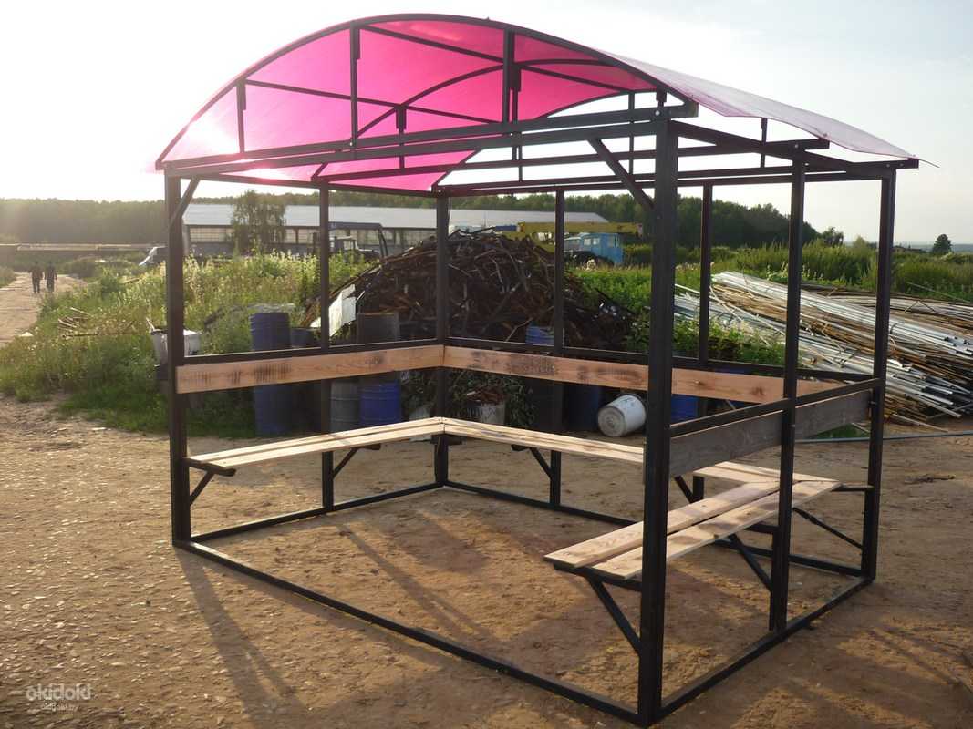 - описываемые конструкции могут использоваться несколько десятилетий, не требуя замены элементов конструкции, как это происходит при использовании деревянных беседок.