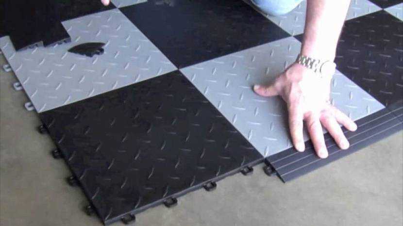 Существует два вида резиновой плитки. У одного по краям предусмотрены пазы для зажима. Соседние сегменты вставляются друг в друга, скрепляясь замковым способом. Такое изделие не сажается на клеевую основу. К полу прикрепляются модули, уложенные по краю напольного покрытия, у гаражных стен. Остальные находятся в свободном положении, что обеспечивает прочность.