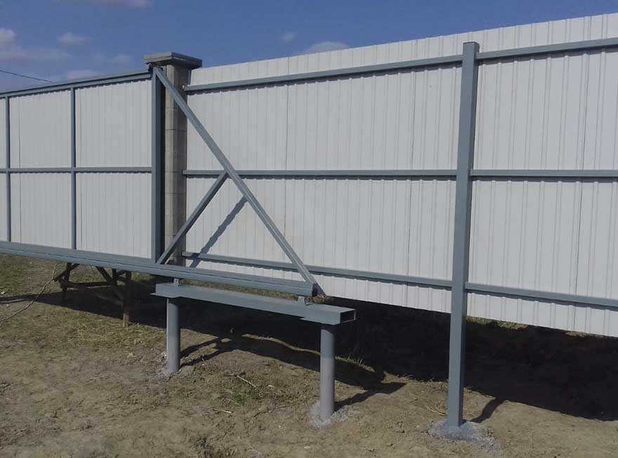 Чтобы правильно осуществить все работы, нужно сначала тщательно просчитать размеры, массу створок, чтобы трубы выдержали ворота. После всех расчетов, выполняется установка опорных столбов. Этот этап является одним из важнейших. От него зависит, насколько надежными будут ворота. Для опор применяют швеллеры или двутавровые балки. На них и будут привариваться ворота.