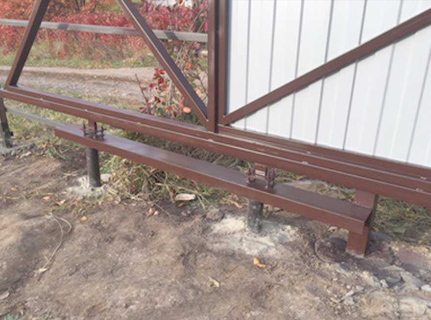 Продумывают, где будут располагаться опоры: под закладной деталью, как минимум 2 сваи, остальные выполняют функцию столбов. Две опоры предусматривают по краям проема. Такая схема обеспечит достаточную надежность конструкции. Фундамент сможет удержать подвижное полотно, если делать такую конструкцию.
