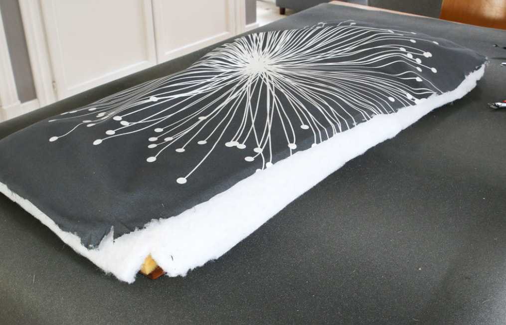 Сразу же переворачиваем ее и устанавливаем поверх поролона. Слегка прижимаем, чтобы закрепить их.