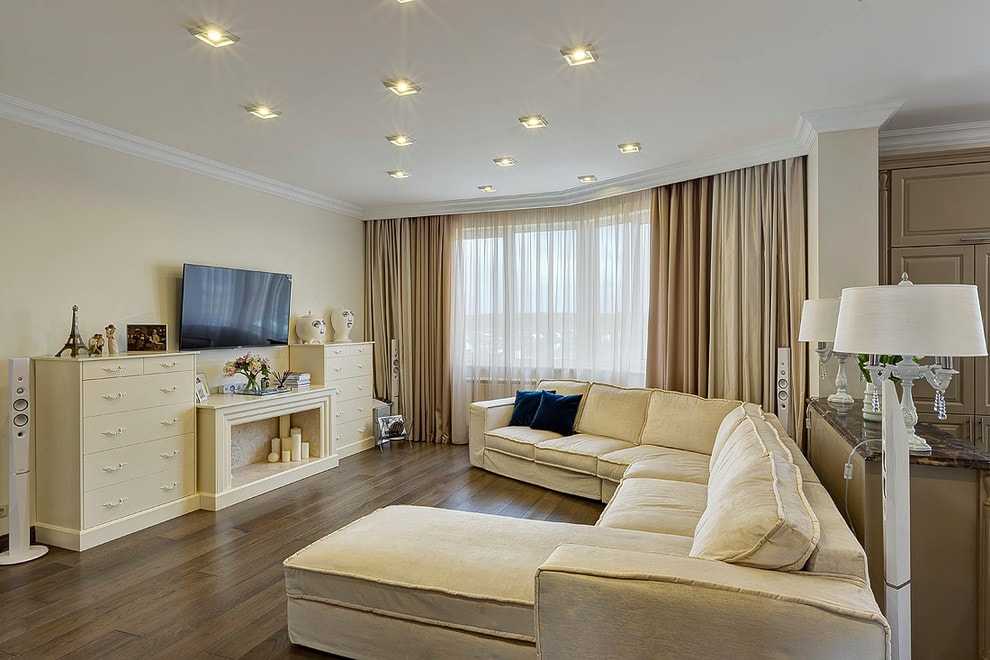 Задача усложняется, если оттоманка входит в набор с диваном или с диваном и двумя креслами. Пространства должно хватать для всех предметов; идеально, если Г-образную модель можно поставить не у стены, а ближе к центру комнаты. В квартире-студии мебель может стать элементом зонирования. В небольшой гостиной, где диван ставят вплотную к стене, уместно подумать о конструкции-трансформере.
