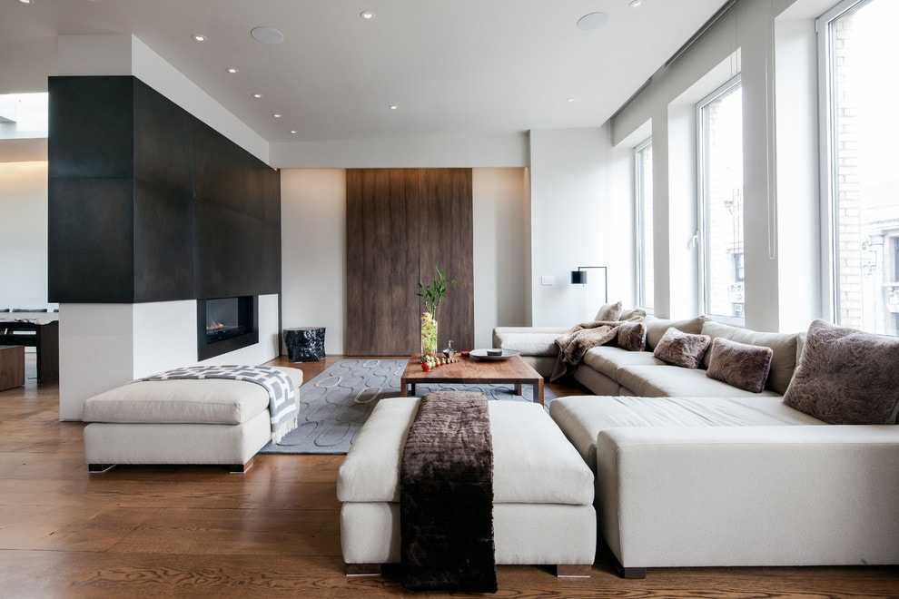 Обставляя большую гостиную, вместо того, чтобы выбирать мебель в традиционном формате, стоит рассмотреть угловой диван из нескольких составляющих. Модульные системы позволяют создать конструкцию, которая будет вписываться в комнату как по размеру, так и по типу полезных функций, внешнему виду, форме. Составляя мебель для отдыха с оттоманкой вы можете создать меньший диван, средний уголок в традиционной L-образной или большой U-образной форме. Все зависит от ваших потребностей.