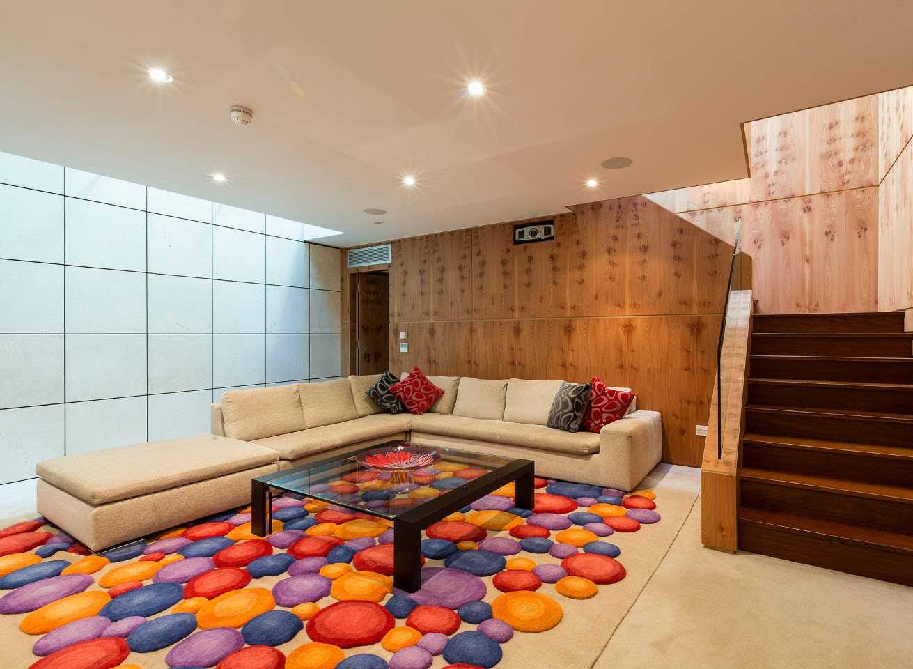 Такие конструкции обычно имеют ровную поверхность для удобства использования и износостойкую ткань обивки для продления срока службы. Но гармонично смотрится такая конструкция только в больших помещениях.