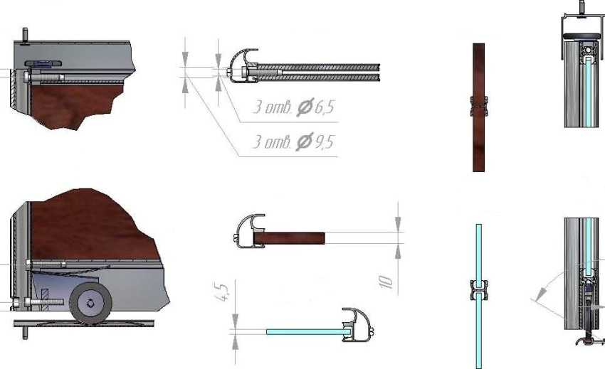 - Купе – ограничители открывания, нижние и верхние рельсы, крепежная система с колесами и уплотнителями на них, ручки, доводчики.