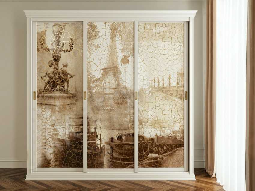 Гравировка – один из самых долговечных способов декора шкафов-купе. С помощью лазерных лучей на поверхность наносится изображение, которое впоследствии никогда не сотрется и не выцветет. Ухаживать за такими шкафами сравнительно легко, они не поддаются влиянию никаких внешних факторов. Оспорить красоту лазерной гравировки сложно, однако стоит помнить, что такой метод довольно сложен в исполнении. Отсюда и большие расценки, которые зачастую препятствуют выбору этой технологии.