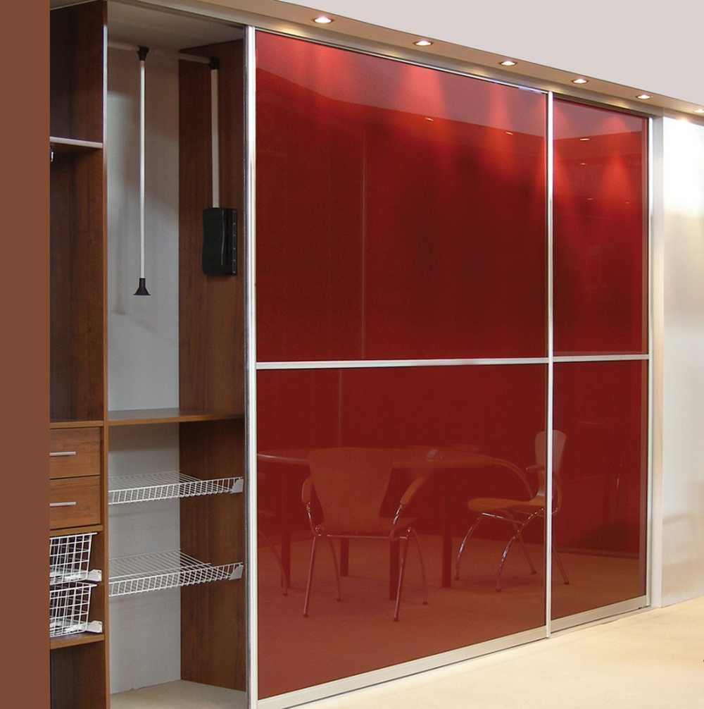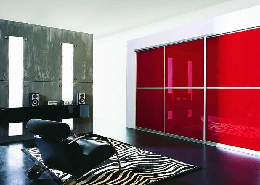 Функционально. Двери шкафов купе и гардеробных становятся частью интерьера комнаты. Они могут использоваться для «маскировки» ниш или проемов, декорирования помещения и даже встраивания техники. Вот несколько примеров. Если часть стеклянного фасада оставить прозрачной (неокрашенной), а внутри выставить сменную экспозицию из любимых шляпок, бижутерии или семейных фотографий, получится оригинальная витрина. Если же скрыть за фасадом экран телевизора, догадаться о его присутствии будет невозможно, пока его не включишь.