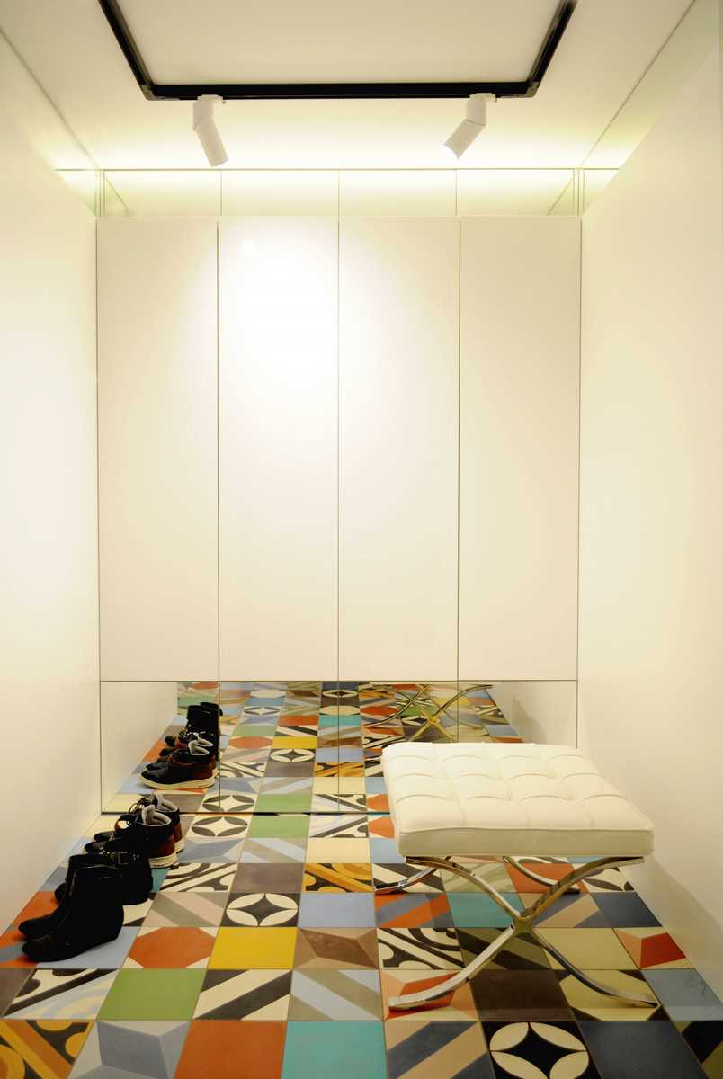 Вы можете выбрать не традиционный фасад для шкафа-купе, а оригинальное решение, которое способно стать даже оптической иллюзией. Благодаря зеркальной вставке в нижней части дверцы создается впечатление, что шкаф подвешен. Это очень хороший эффект, когда вы хотите добавить легкости интерьеру. Например, зеркала, отражающие узорный пол, оптически расширяют пространство.