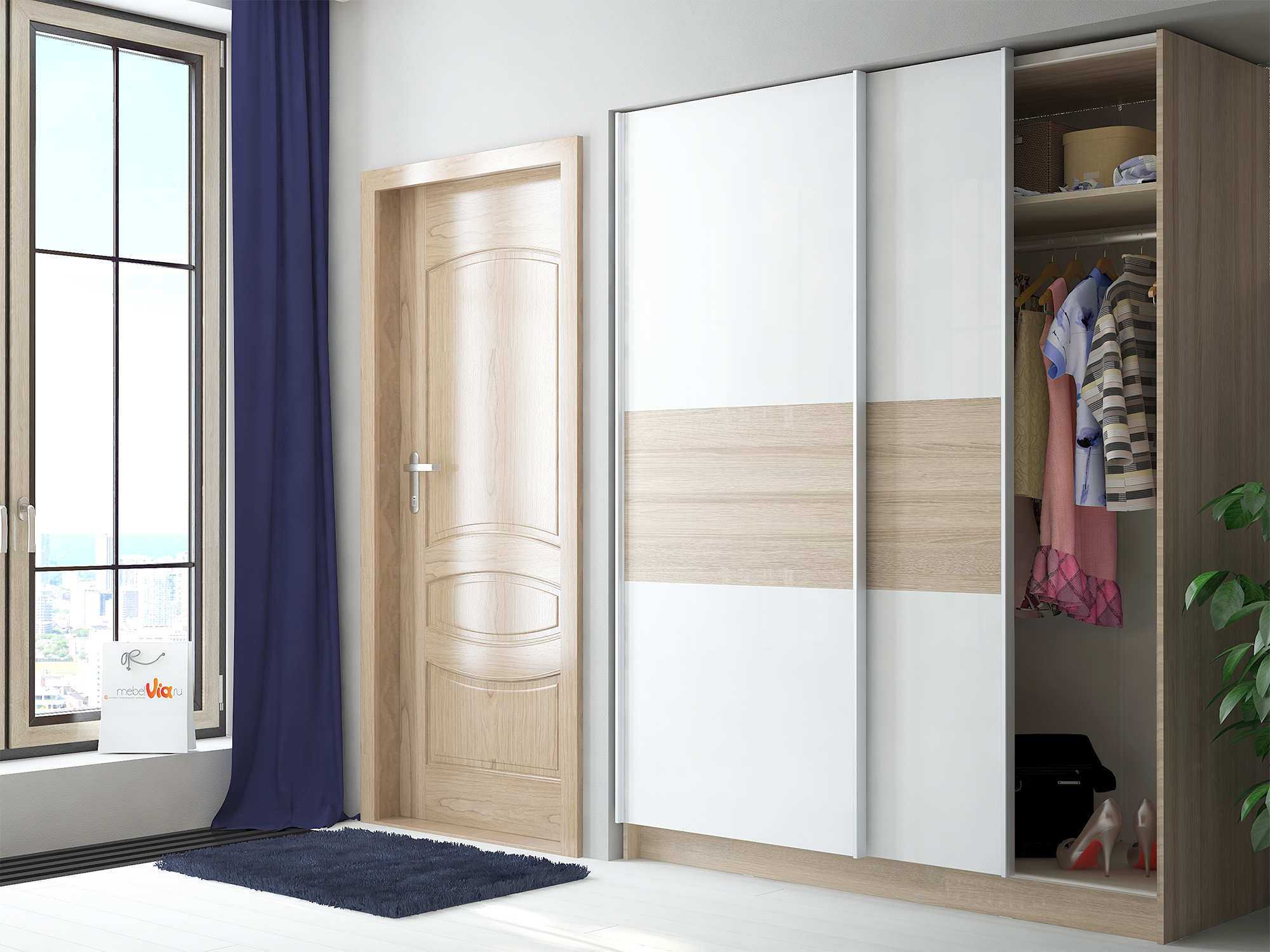 Древесные плиты, кожа и зеркала. Наиболее распространены двери шкафа из ДСП и МДФ. Эти материалы могут иметь разную облицовку: ДСП обычно ламинируют или фанеруют шпоном, МДФ же может использоваться и в крашеном виде. На его поверхность иногда наносят рисунки и рельефные изображения.