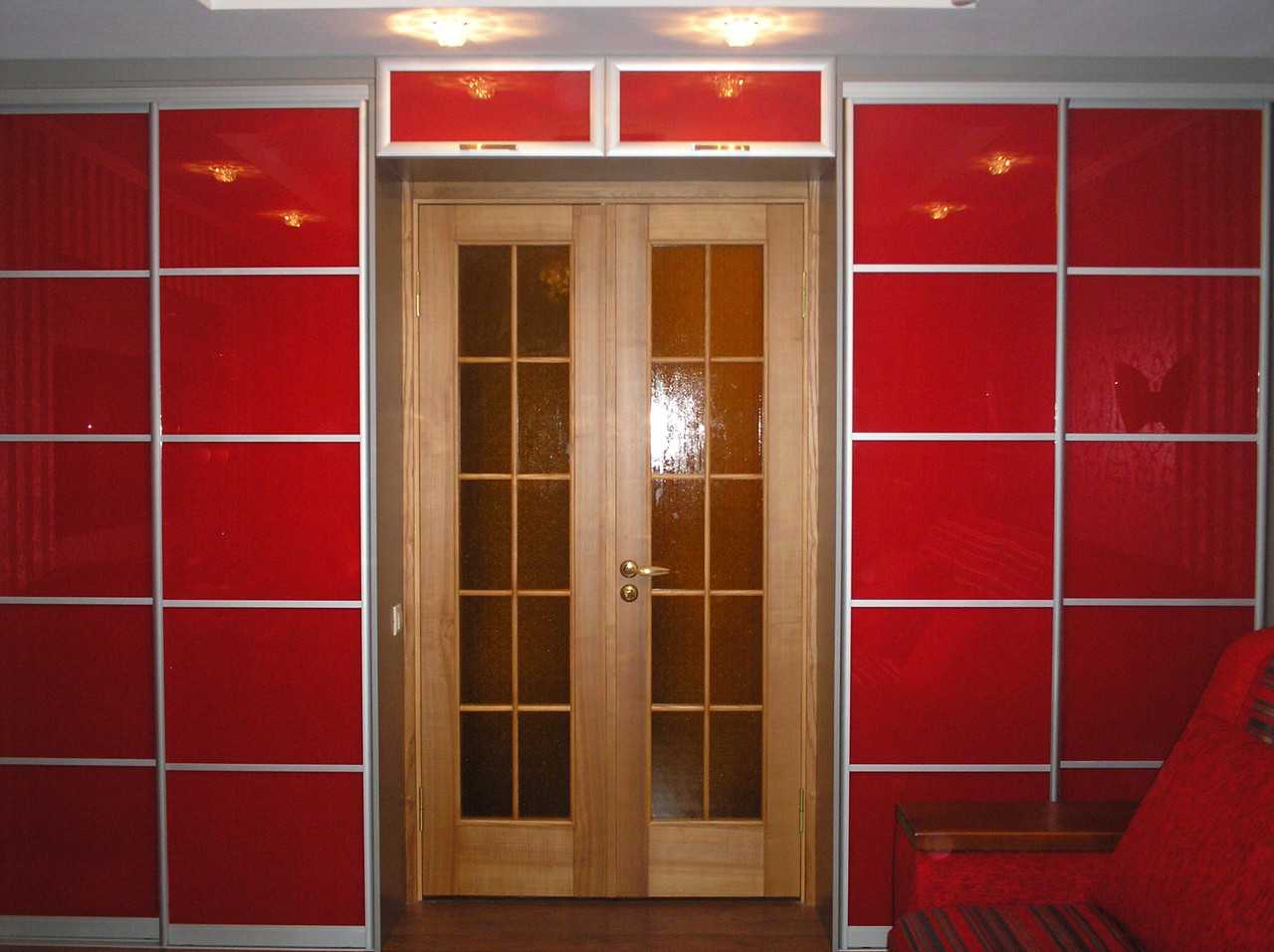 Отличный вариант – фасады из лакированного закаленного стекла или полупрозрачные панели, которые «углубляют» пространство. Модно имитировать на поверхности двери необычные фактуры: чеканку, циновку, искусственный камень.