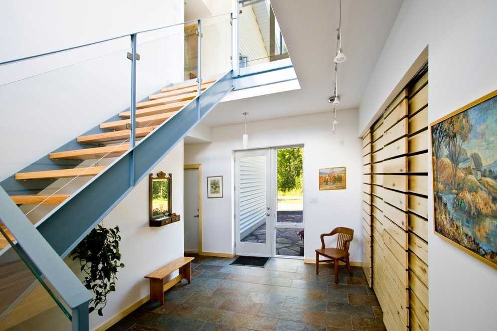 Очень часто можно встретить в прихожей встраиваемый в нишу шкаф открытого типа, который лишен открывающихся дверок. Такой вариант выглядит минималистично, однако является наиболее удобным в эксплуатации, так как позволяет быстро снять с крючка одежду или взять необходимый аксессуар из полки или ящика. Однако, поскольку все содержимое конструкции находится на виду, вещи в шкафу должны быть аккуратно укомплектованы, чтобы обстановка в помещении не напоминала хаос.