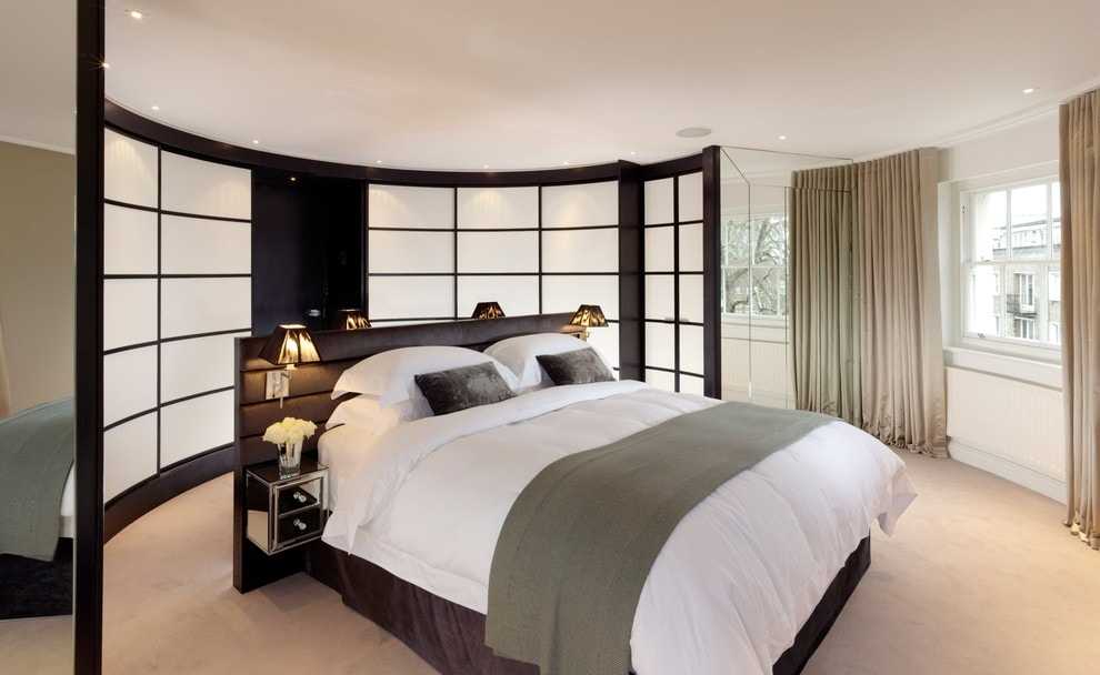 При выборе оптимального варианта фасадной композиции для спальни нужно учесть концепцию стиля интерьера и гамму оттенков. Здесь все должно способствовать полноценному отдыху. Комфорт атмосферы поддержит мягкая палитра пастельных тонов и натуральные качественные материалы.