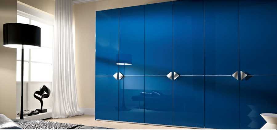 - для спальни подойдут как светлые, так и яркие варианты. В небольшой комнате глянцевый шкаф стоит установить вдоль стены. Для просторной спальни можно рассмотреть вариант встроенной модели. Неплохо смотрятся шкафы с узорами на глянцевом фасаде;