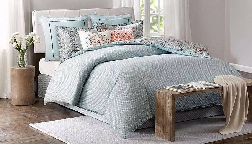 За счет своей конструкции чехол смотрится достаточно строго и аскетично, поэтому идеально подходит для интерьера спальни в современном стиле или Минимализм. Оно может быть однотонным или же оформлено каким-либо орнаментом.