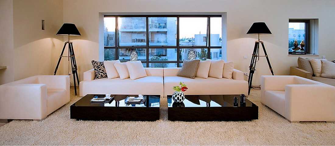 Метод планировки способствует общению, поэтому его чаще используют в гостиных. Этот прием позволяет создать 2-3 зоны, чтобы физически разделить комнату. Этот вариант можно комбинировать с другими технологиями обустройства. Мебель разных стилей, форм и размеров гармонично смотрится в интерьере.