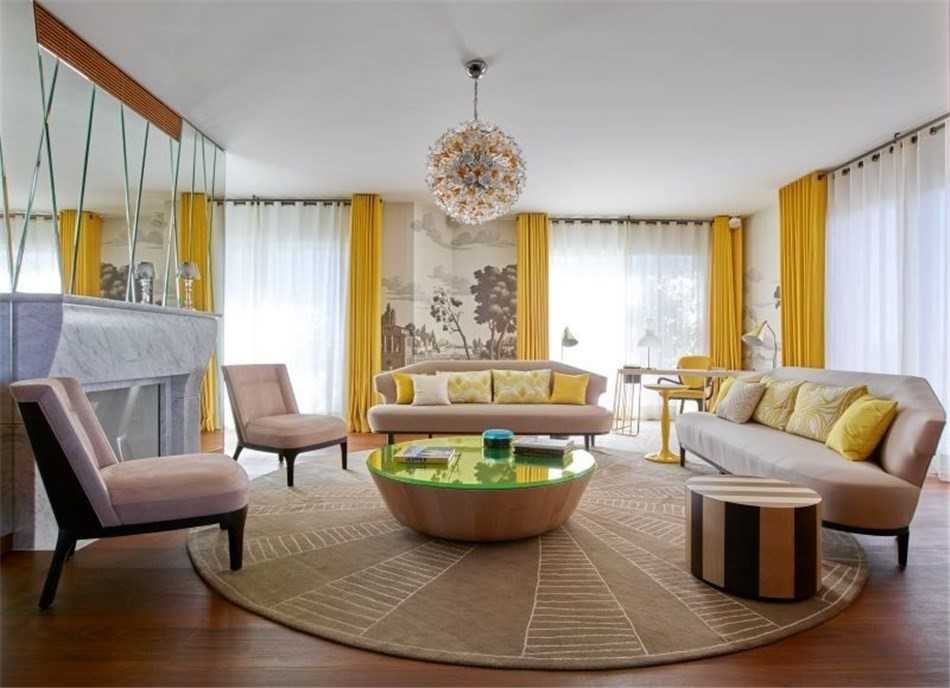 Круговая расстановка мебели бывает симметричной или асимметричной. В первом случае интерьер располагается напротив друг друга. Второй вариант предполагает смещение размеров элементов ближе к центральной точке (фокусной точке).