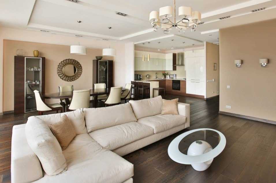 Большая комната чаще всего в доме или квартире обозначается как гостиная, поэтому необходимо знать, какие зоны здесь следует выделить. Чтобы легче было распределить пространство, нужно воспользоваться схемой, нарисованной на бумаге, и расположить на ней основные темы интерьера. Также проводится зонирование пространства.