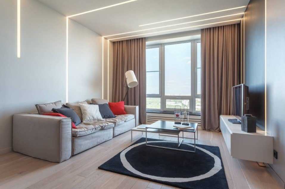 При планировке интерьера гостиной стоит знать некоторые нюансы, которые помогут разместить мебель более комфортно. Например, расстояние между диваном и журнальным столиком должно быть не менее 40 см. От того, насколько свободны проходы в комнате, зависит и то, насколько в зале будет комфортно. Ширина их не должна быть менее 60 см. Если комната очень большая, то она может быть более 100 см.