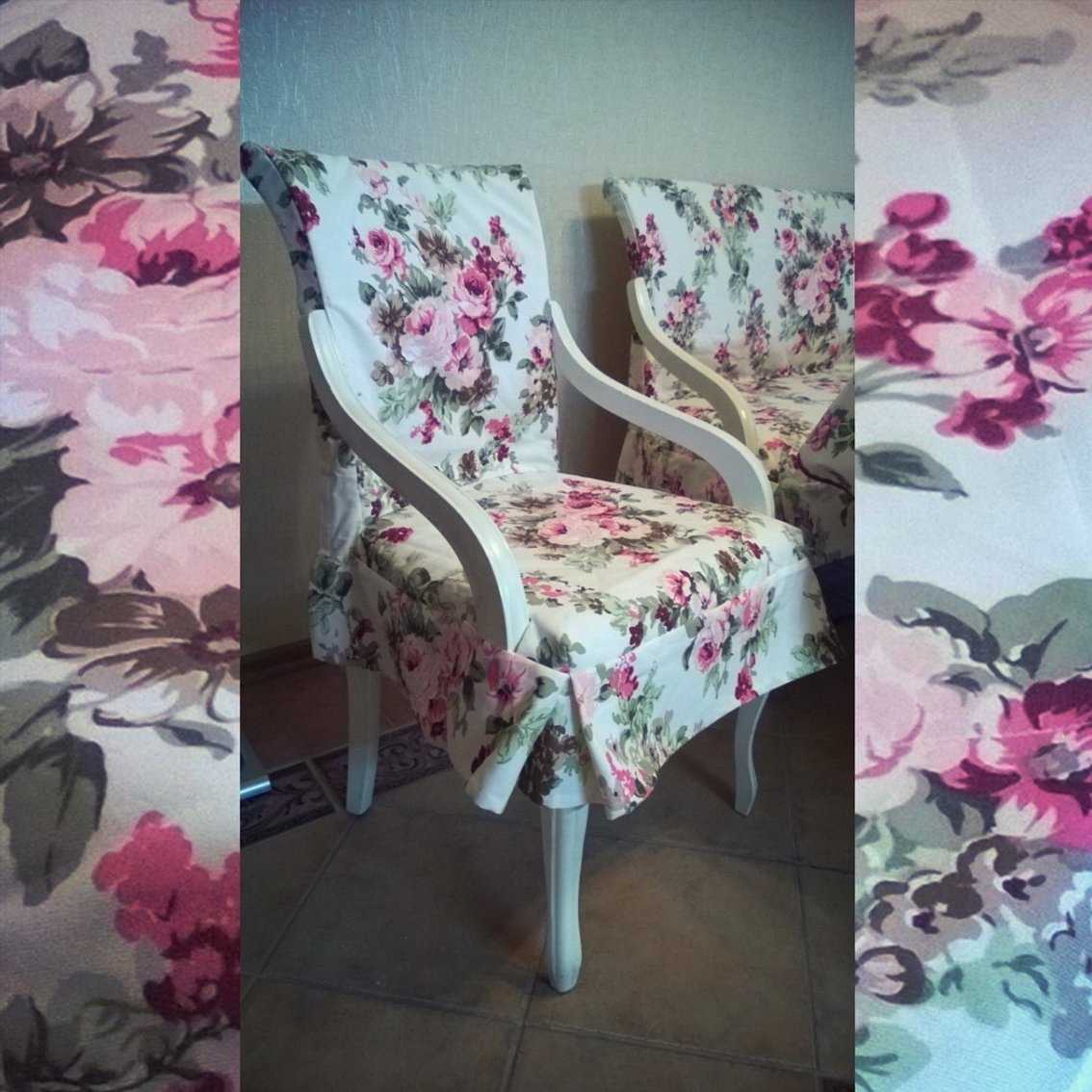 У стульев со спинкой и подлокотниками могут быть задекорированы только спинка и сиденье или спинка, сиденье и подлокотники. На круглых или квадратных табуретках для кухни тканевый чехол на резинке покрывает сиденье.