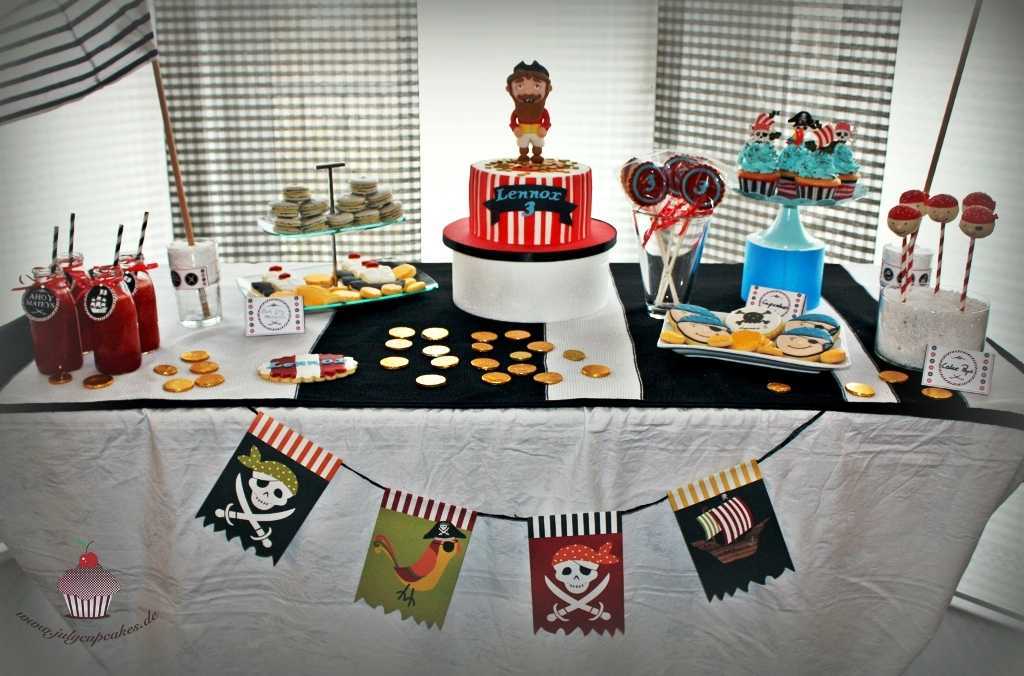 Для мальчика тоже есть классический оттенок — синий. Под него подходит множество тематических вечеринок, которые связаны с морем. Украсить на день рождения детский стол, можно как в мультфильмах про пиратов. Если добавить черный флаг, а гостей нарядить в тематические костюмы, получится пиратский день рождения. Имениннику отводится самая важная роль — быть капитаном.