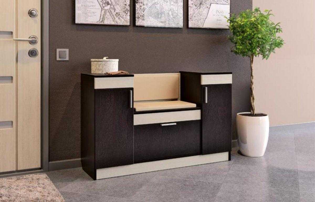 Он избавит хозяев от проблемы постоянного беспорядка с обувью, а также станет местом хранения перчаток, шапок, зонтов и сумок. На столешнице можно разместить косметику, телефон, ключи, а также декоративные элементы в виде часов или вазы.