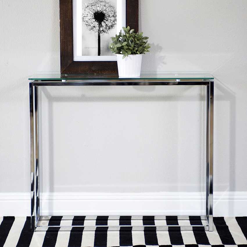 Стеклянные консоли выглядят изысканно и воздушно, они подходят для разных стилевых направлений