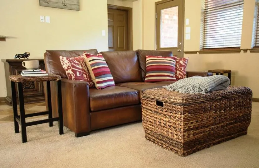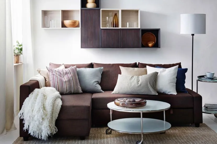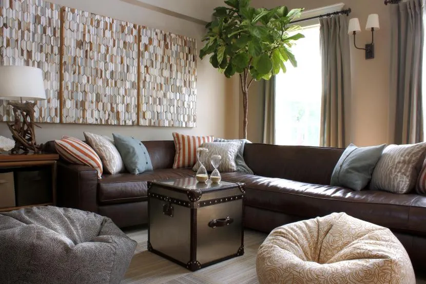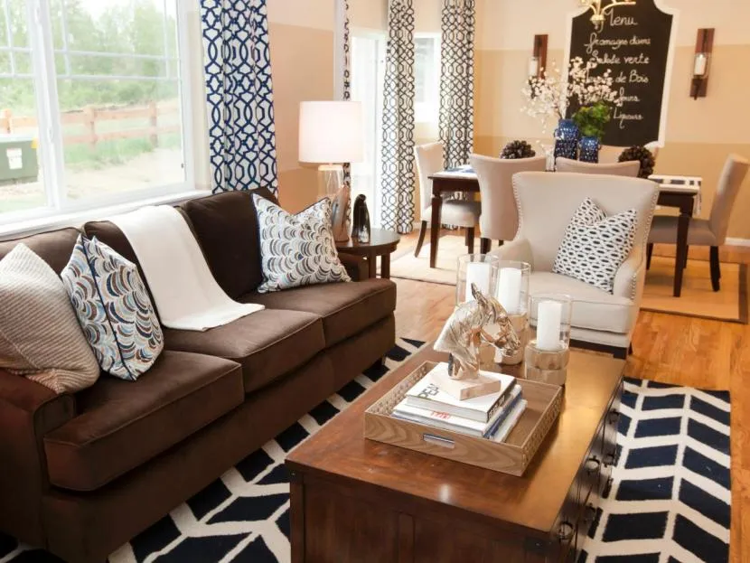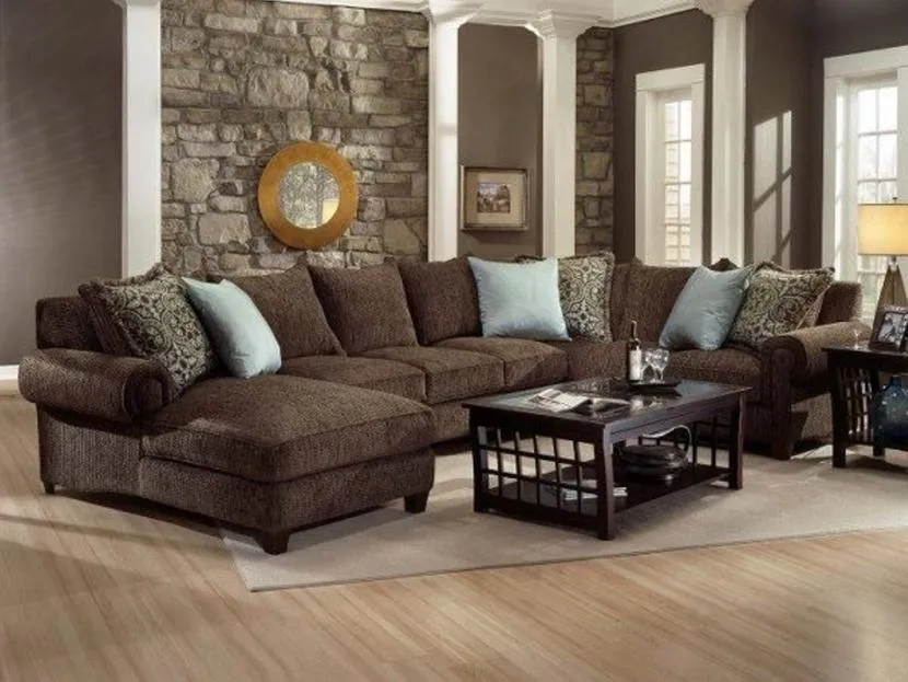 Коричневый диван в маленькой гостинойИсточник thecentrestar.com