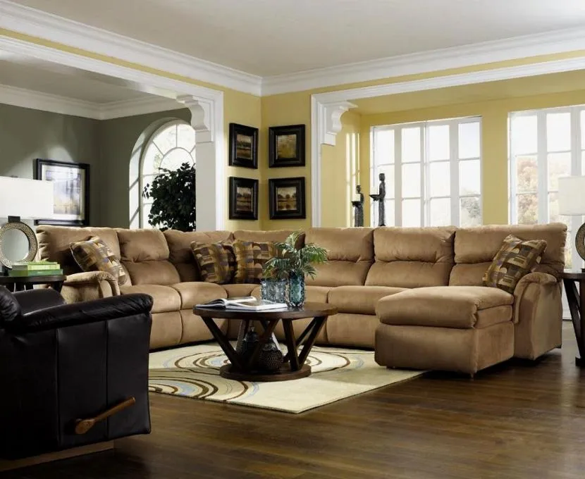 Для просторной гостиной можно выбрать как трансформирующуюся, так и неразборную или дизайнерскую модель. Популярностью пользуются угловые диваны, которые представлены следующими вариантами исполнения: