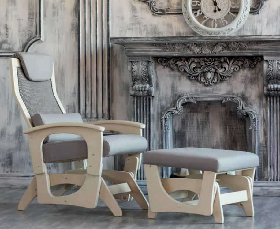 - С подножкой. Кресло глайдер с подставкой для ног пригодится тем, кто любит комфорт.