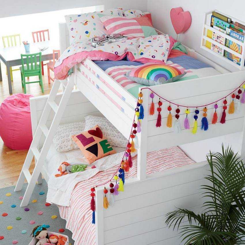 Яркий декор делает дизайн двухъярусной кровати по-настоящему уютным