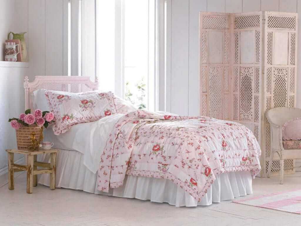 - Шебби-шик — мебель может быть старинной или новой, но обязательно с потертостями. Цвета подбираются пастельные. Здесь также будет уместна тематика принцесс.
