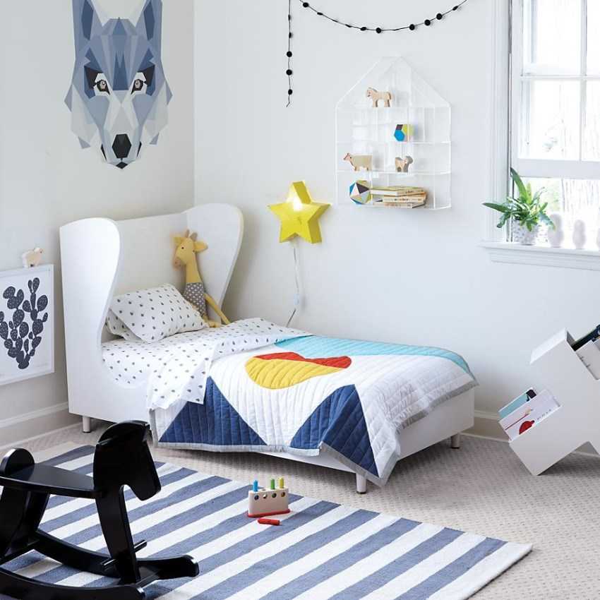 - зона сна должна располагаться в одном из углов спальни. Кровать желательно поставить на противоположной от окна стороне. Это даст ребенку возможность, просыпаясь, видеть природу и мир за окном. Если в комнате недостаток места, то стоит посмотреть в сторону складных диванов или двухъярусных кроватей. Детям до 4 лет приобретается манеж со съемными боками, а старшим – обычная кровать. Существуют кровати трансформеры – универсальное место для сна. Они могут увеличиваться по мере роста ребенка;