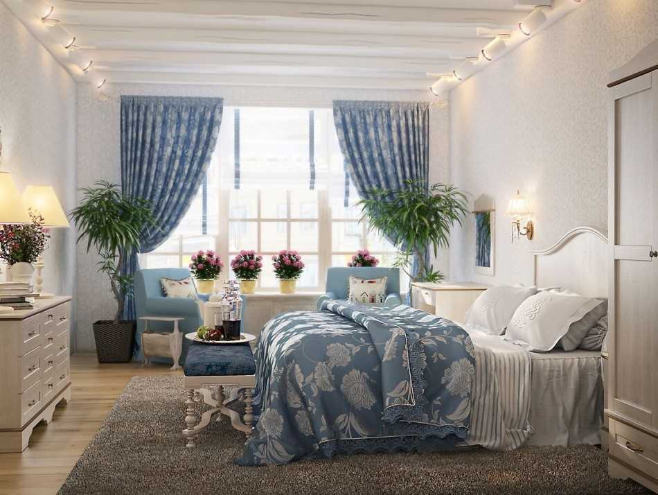 Родина прованса – южный регион с мягким климатом, поэтому интерьер должен быть светлым. Желательно, чтобы в спальне были большие окна.