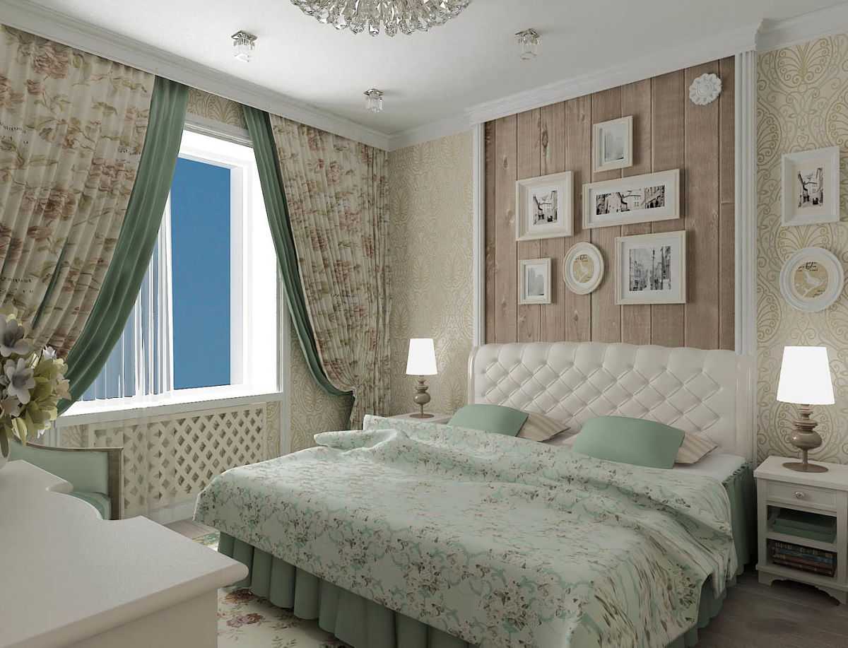 Спальни в хрущевке маленькие, и оформление их в стиле прованс нужно тщательно продумать. Стены можно оклеить обоями с изображением цветов, листьев. Если комната узкая, их лучше просто побелить. Это позволит визуально расширить пространство.