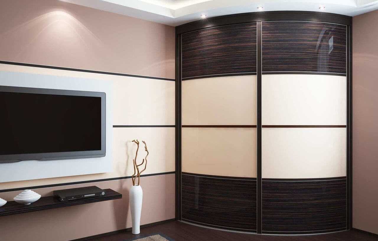 - нишей под телевизор — радиусный шкаф может оснащаться специальными секциями для установки радиотелевизионного оборудования;