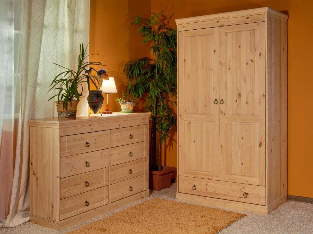 Сосновая мебель для спальни обладает приятным внешним видом и успокаивает нервную систему владельцев. Кроме того, она способна выдерживать большие нагрузки и не деформироваться. Также, сосна полностью безопасна для аллергиков и хорошо подходит для установки в детскую.