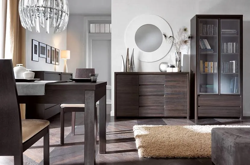 Мебель в темной, насыщенной палитре придает интерьеру черты респектабельности. Ее используют для создания самых разных интерьеров: классических, рустикальных, в стиле шале и модерн. Темная обстановка съедает пространство, но отдельные темные предметы можно включать в интерьер маленьких комнат. К темным тонам относят: