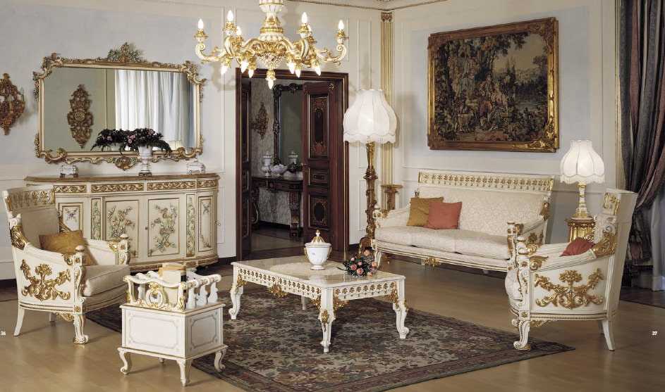 - Барокко – подразумевает богатый, вычурный интерьер. Комнаты, украшенные декоративными элементами, дополняет мебельное великолепие самых причудливых форм. Именно оно играет ведущую роль и притягивает к себе взгляд. Для мебели в стиле барокко клен красят в темный цвет и выделяют текстуру древесины.