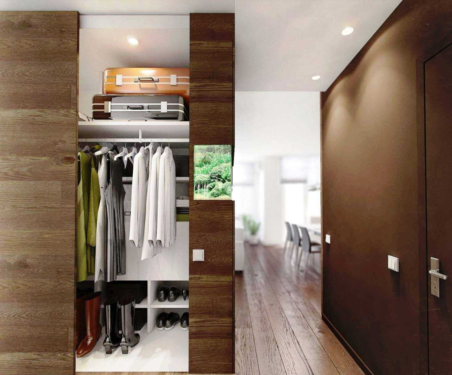 В первую очередь это место, где будет размещаться верхняя одежда и обувь. В большинстве случаев это шкафы разных модификаций: купе, с распашными дверцами или гармошкой.