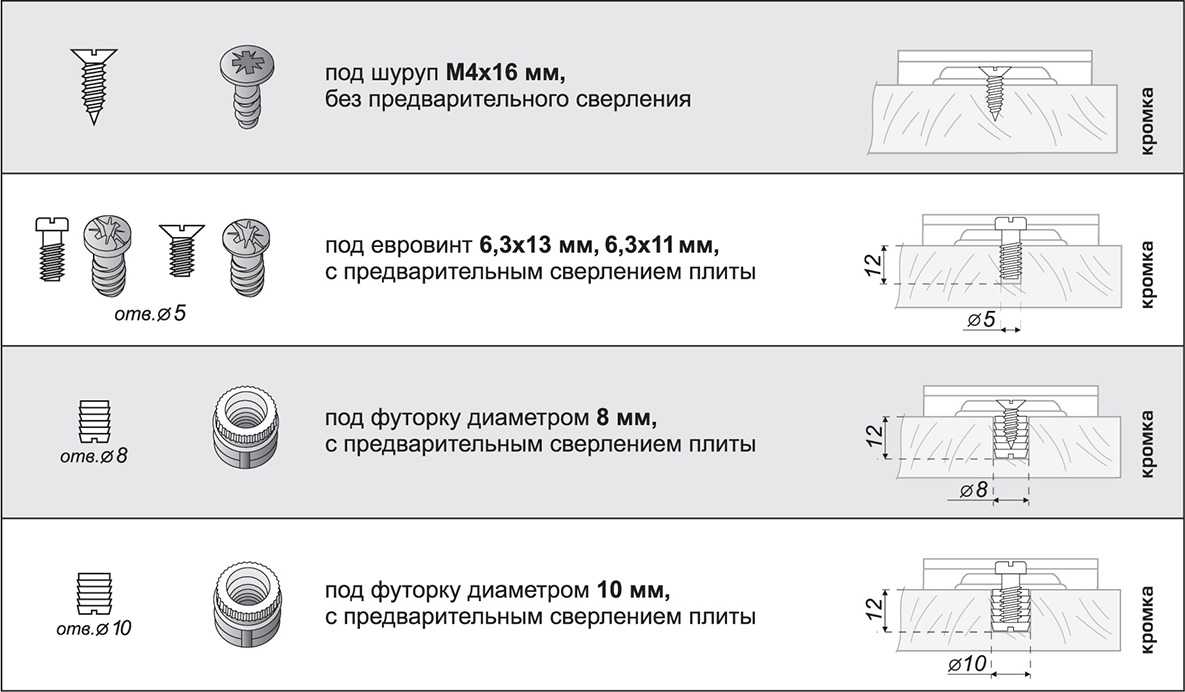 Для того чтобы выполнить крепежные отверстия для мебельных шурупов правильно, необходимо следовать рекомендациям специалистов:
